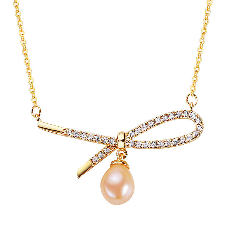 Zhuji Wholesale S925 Silver Box Chain Necklace with Near Round Freshwater Pearl Best Gift for Girlfriend