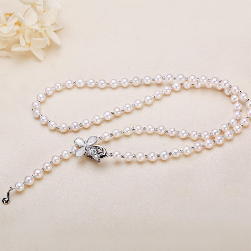 Zhuji Women's Long Style Freshwater Pearl Necklace Flower Buckle Neck Decoration Real Pearl Collarbone Chain for Autumn Winter