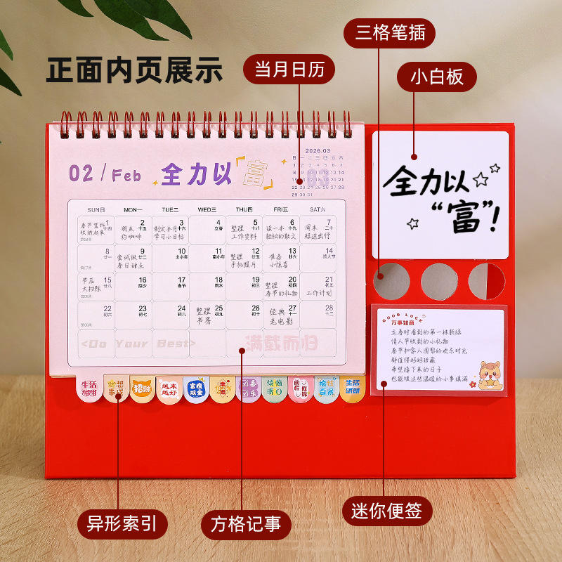 Zhuorui Stationery 2026 Table Calendar Digital Printing Creative Desk Ornament With Pen Holder For Office Gift