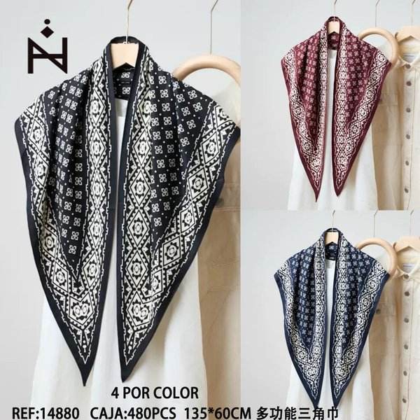ZiN Triangular Silk Scarf 135x60cm Geometric Print Elegant Fashion Accessory For Women All Seasons