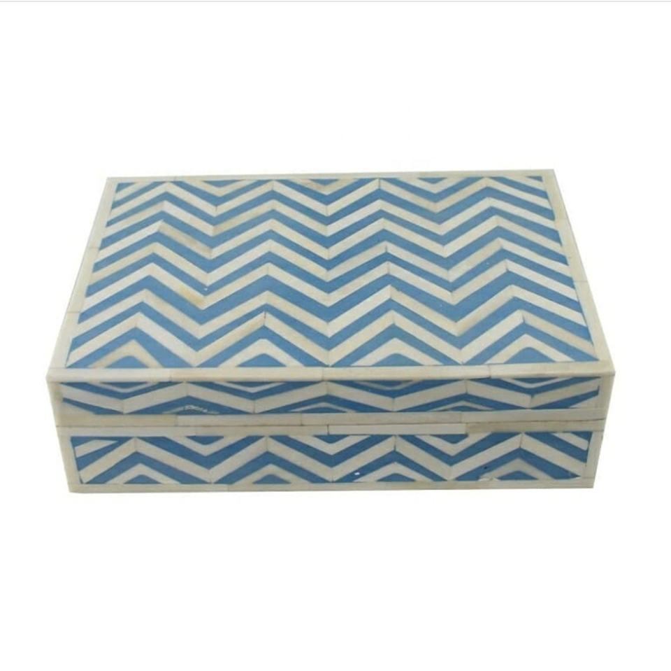 Lametierartz Handmade Wooden Rectangle Jewelry Box Bone Inlay Design on Luxe Resin MDF Storage Bin for Luxury Items