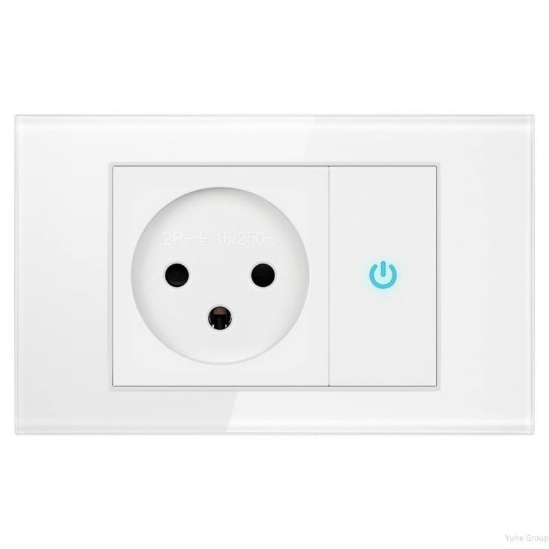 Zigbee Touch Panel Light Switch Socket 1-Gang Wall Switch with Socket Glass Frame IP21 Rated Minimalist Design for Home Business