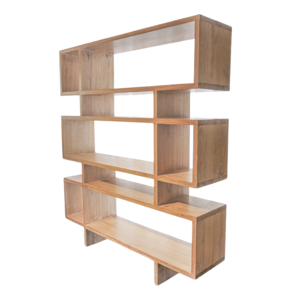 Zigzag Teak Wood Modern Furniture Open Shelf Display Rack Geometric Storage Cabinet for Home School Living Room or Bedroom