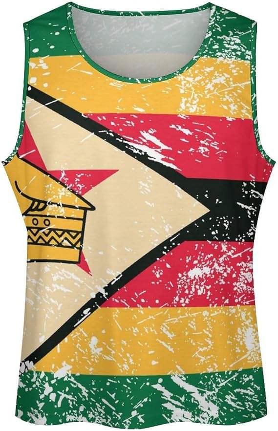 Zimbabwe Retro Flag Men's Muscle Tank Top Breathable Casual Sleeveless Workout Gym Fitness Tee Vest