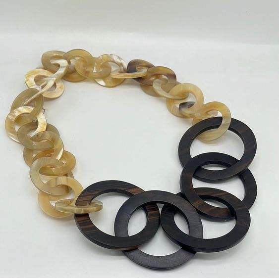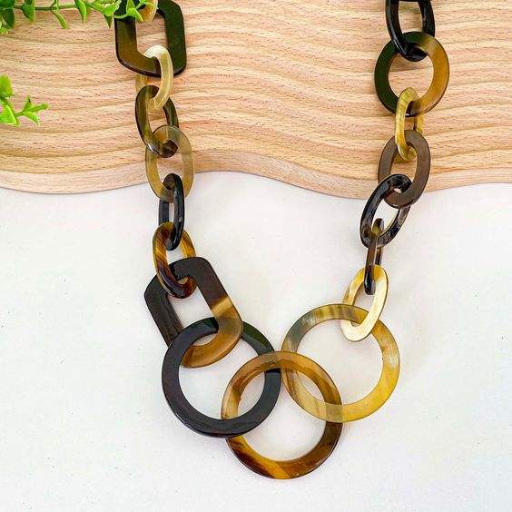 Zinc Alloy Buffalo Horn Chain Necklace Boho Chic Graduated Links Chunky Zircon Christian Silver Plated