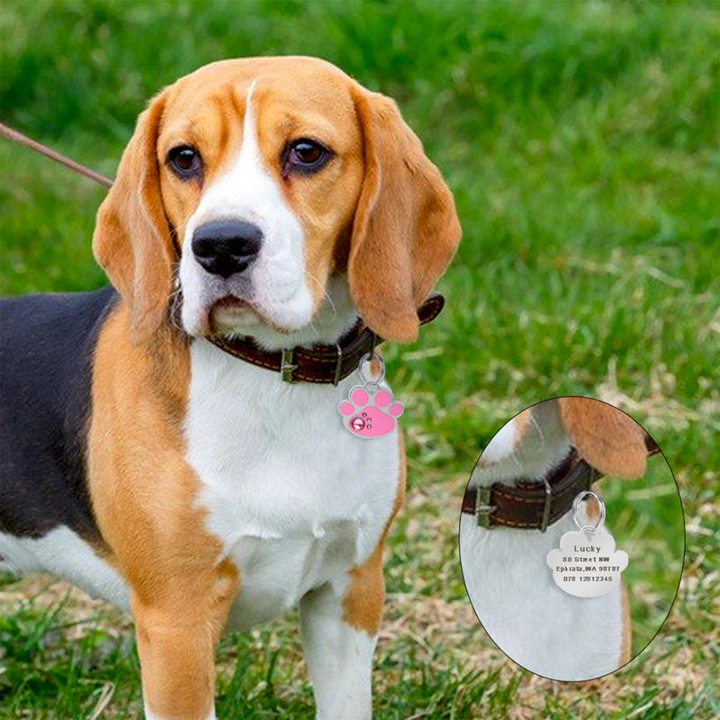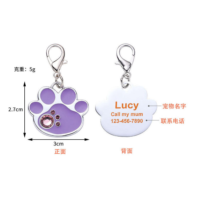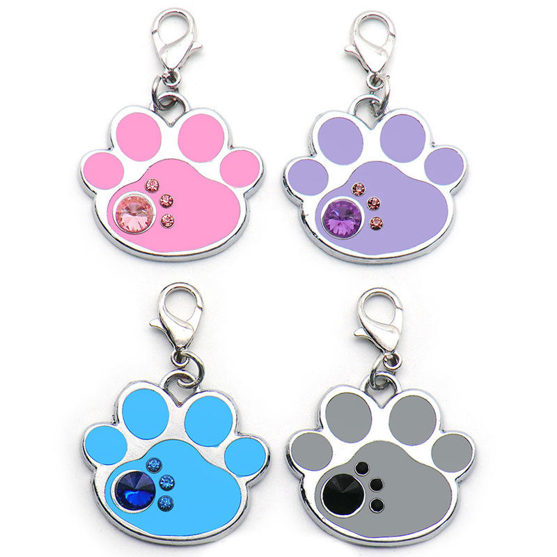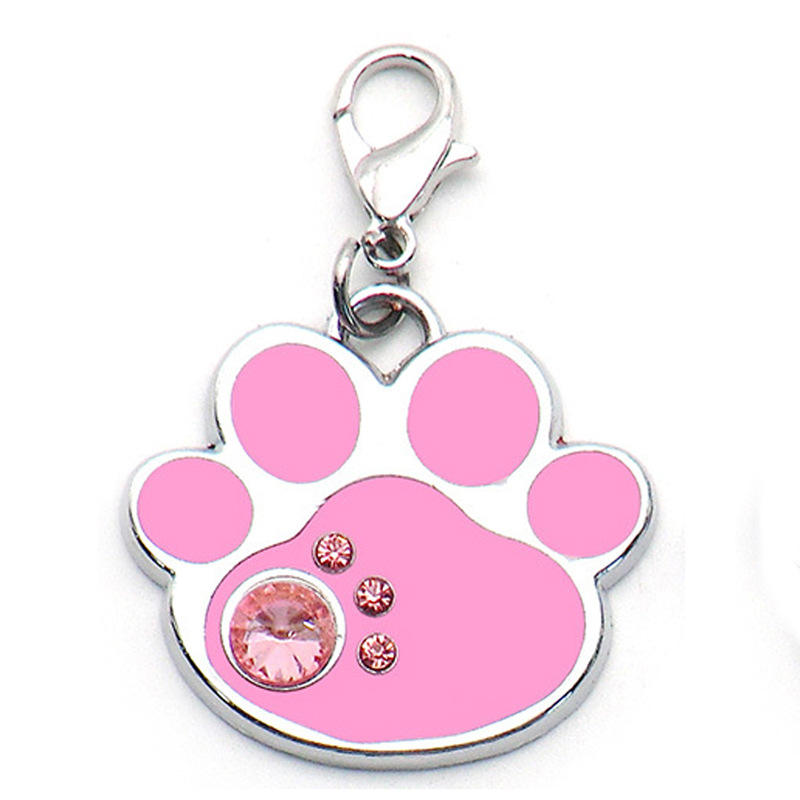 Zinc Alloy Fashion Pet Anti-Slip ID Card with Diamond Footprints Pendant with Laser Engraved Lettering Metal Key Chain