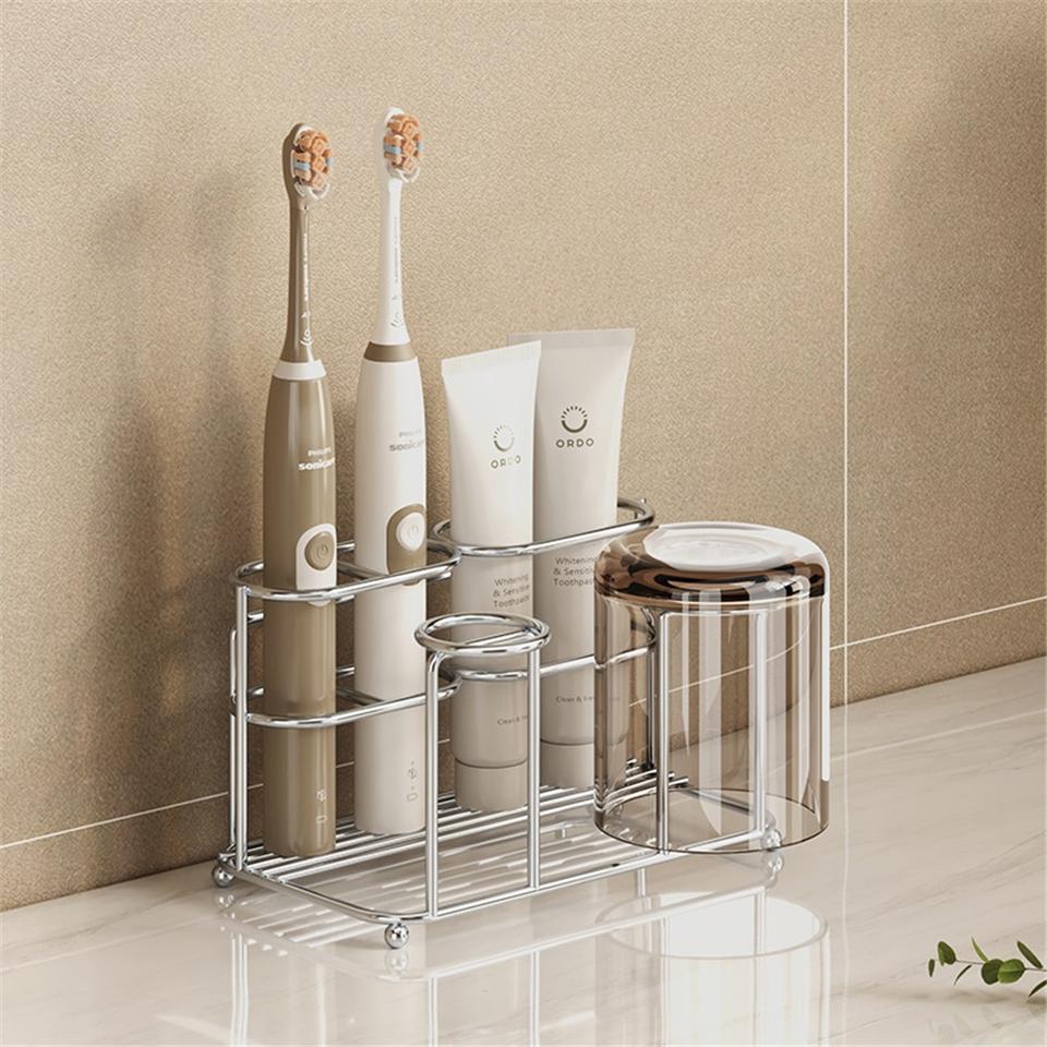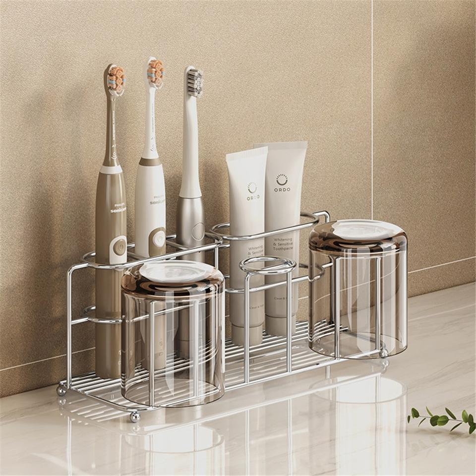 Zinc Alloy Modern Corner Toothbrush Rack Punch-Free Countertop Mounted Toothpaste and Mouthwash Cup Storage Rack