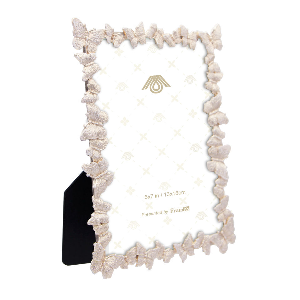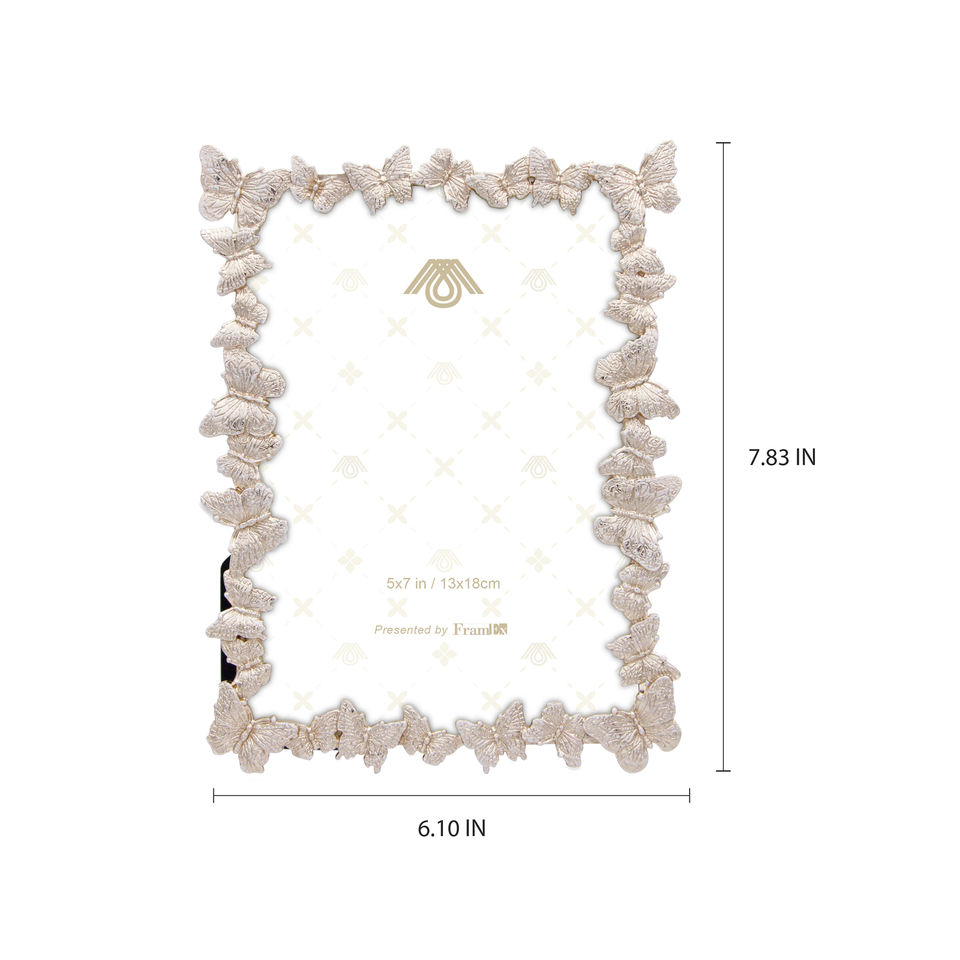 White 5" X 7" Zinc Alloy 3D Butterfly Pattern Gold Plated Spray-Painted Metal Photo Frame