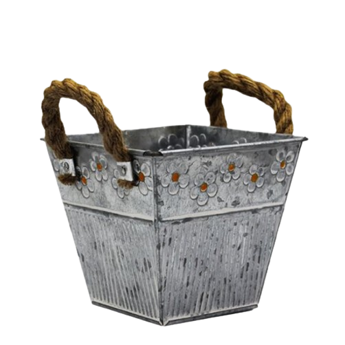 Zinc Pots with Tray Farmhouse Vintage Galvanized Metal Herb Plant Pot Planter Custom Sale Outdoor Decorative Zinc Pots