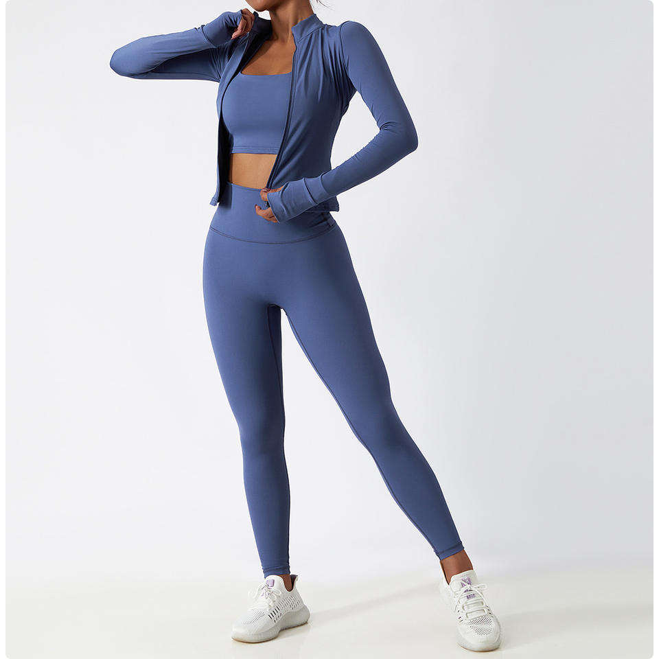 Zip 2026 Women's Sports Bra Jacket & Leggings Set Sexy High Waist Workout Active Wear Long Sleeve Breathable 3-Piece Yoga Set