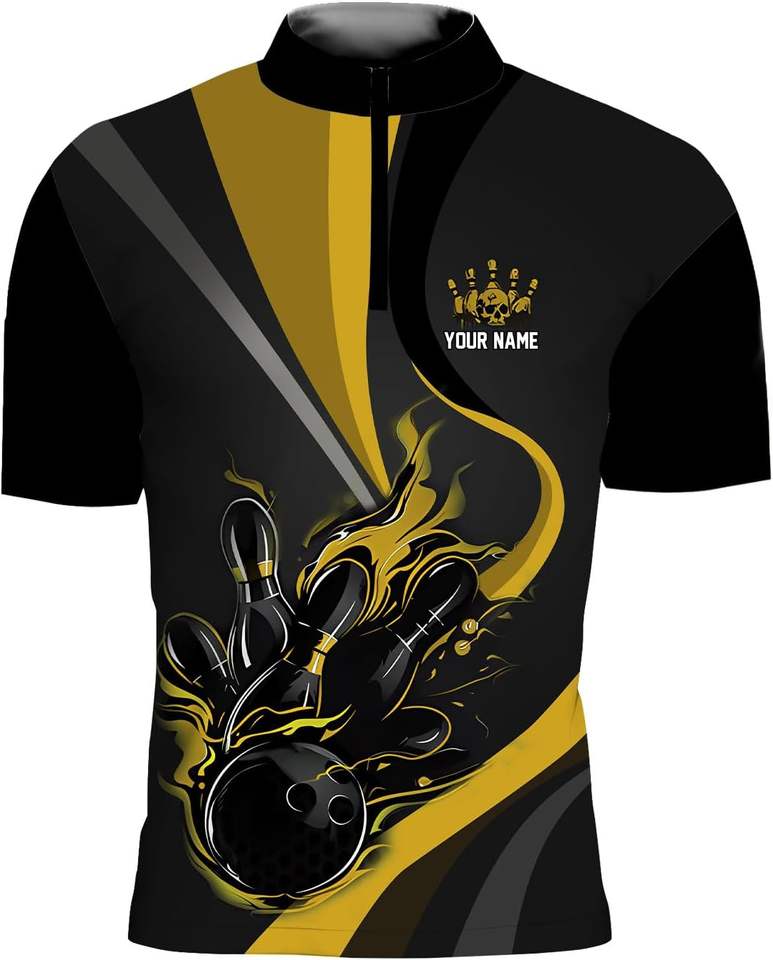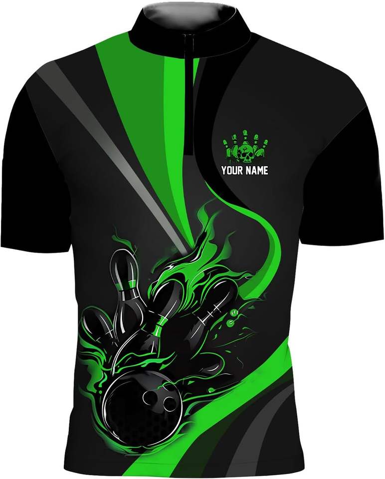 Zip Neck Printed Breathable Eco-Friendly Bowling Jerseys with Custom Sublimated Graphics OEM Service for Clubs and Leagues