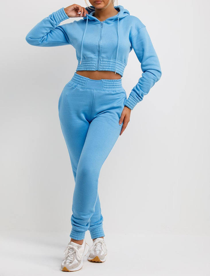 Zip Sweatshirt Crop Top Women's Suits Cotton Women's Fitting Tracksuits Custom Men Stacked Sweat Suit Hem Cut Hoodie Jogger