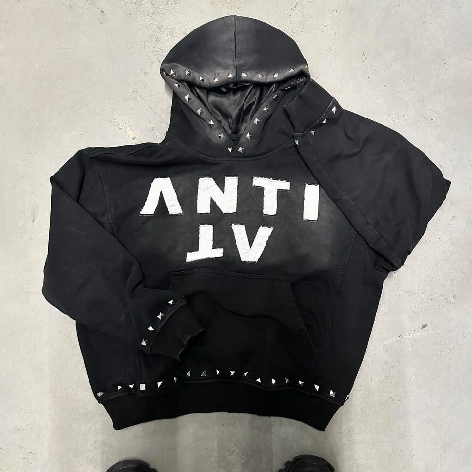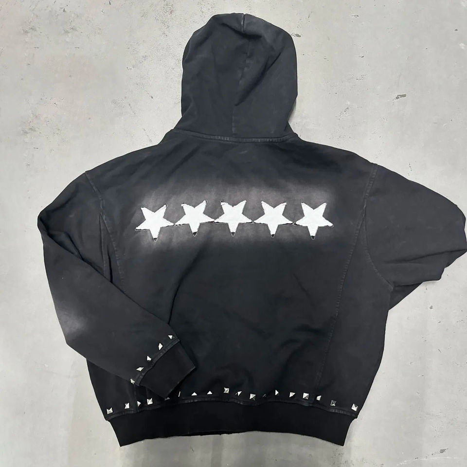 Zip up Black Wash Sun Faded Hoodies Cropped Distressed Embroidered Patches Hoodie Blank Custom Distressed Hoodies FOR MEN