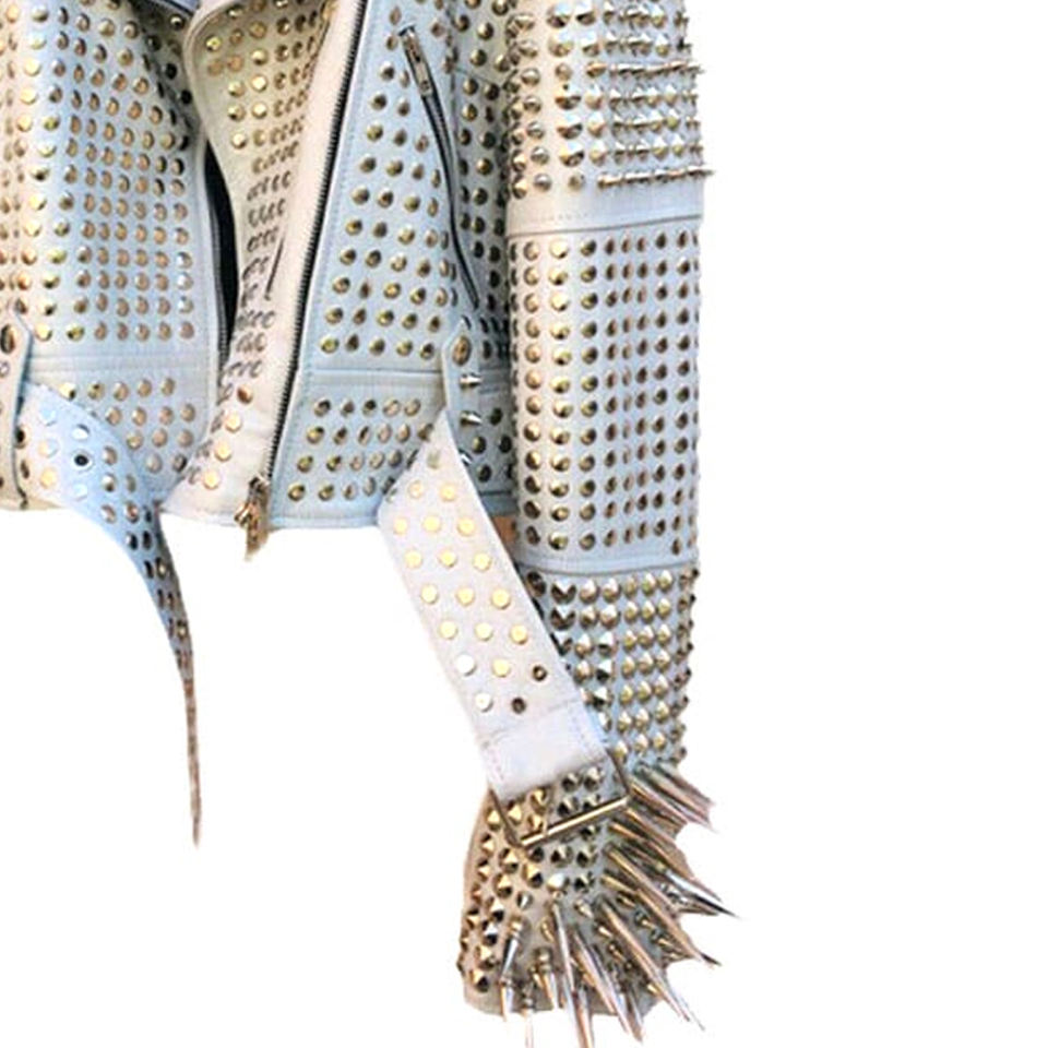 Women Leather Studded Jacket Customized