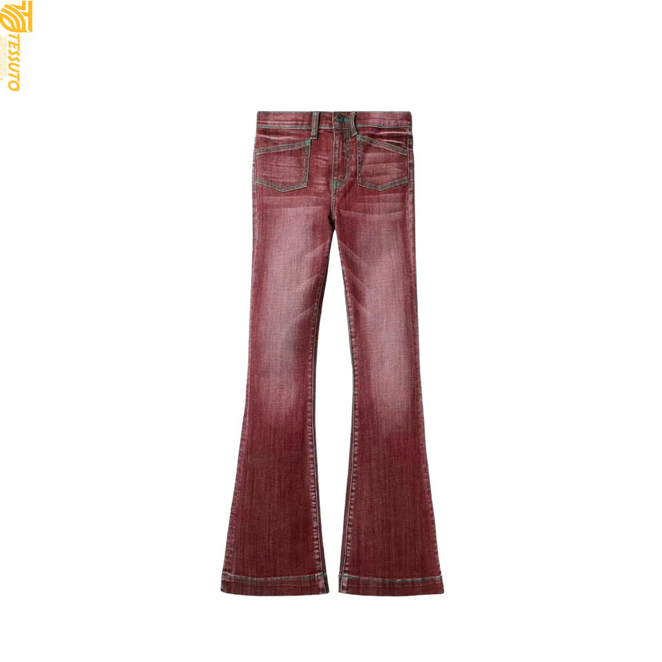 Zipper Fly Denim Blue Boot Cut High Waist Vintage Jeans Pants for Women Full-Length Casual Fashion Embroidery Tassel Belt Quick