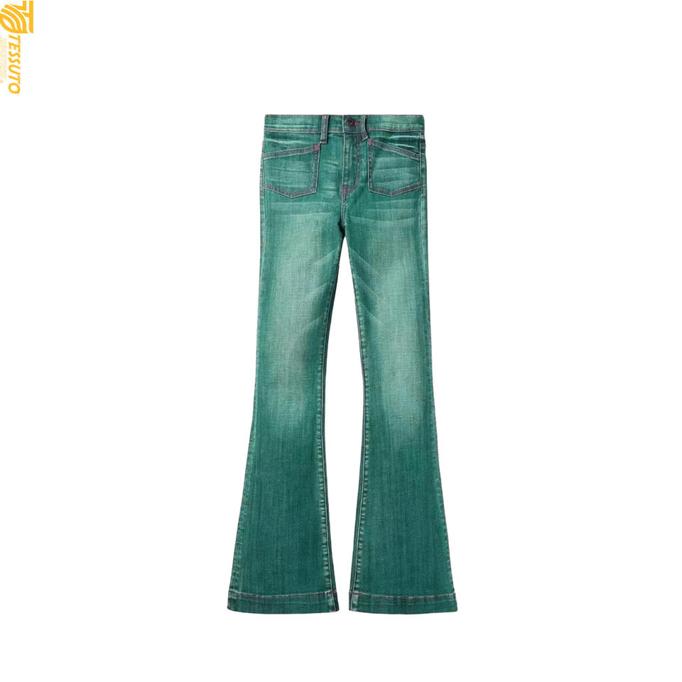 Zipper Fly Denim Blue Boot Cut Jeans Pants for Women Full-Length Casual Vintage Embroidered Tassel Belt Autumn Spring