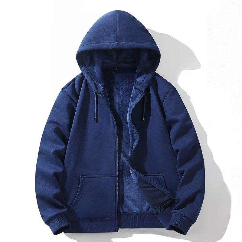 Zipper Hooded Sweatshirt Autumn Winter Fleece-lined Warm Composite Cardigan Pure Cotton Casual Men Women Base Solid Color Y2k