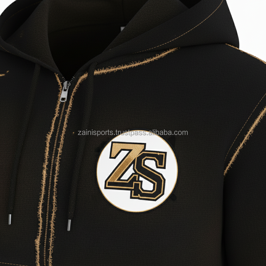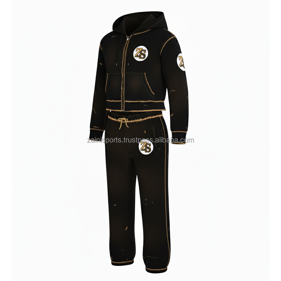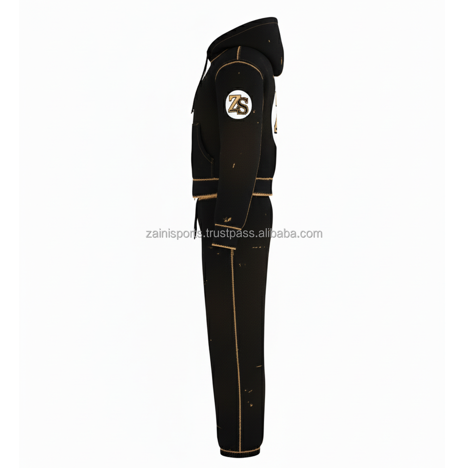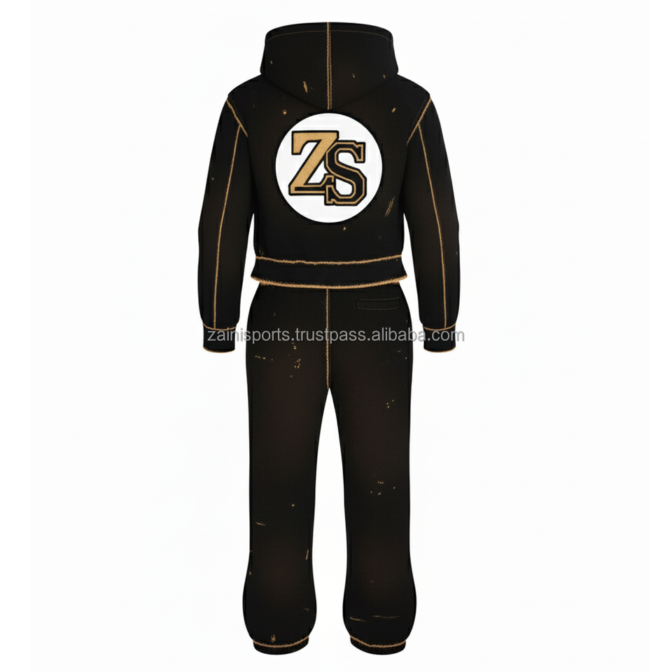 Zipper tracksuit heavy fleece 380 GSM winter warm soft fabric black with tan stitch custom logo embroidery Tracksuits Plus size