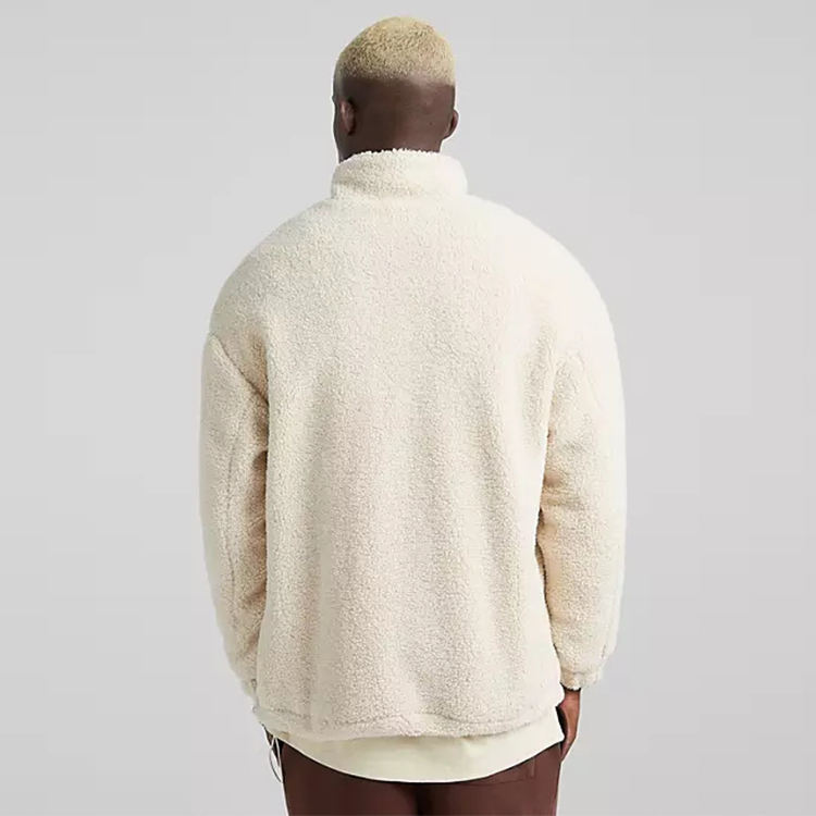 Zipper up Sherpa Sweatshirt Beige Heavyweight Mens Sherpa Fleece Oversized Dropped Shoulder Pullover Hoodie