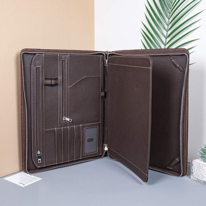 Zippered Padfolio Portfolio Binder,A4 Leather Folder Portfolio With Zipper Closure,A4 Zipper Leather File Folder LPF-0532