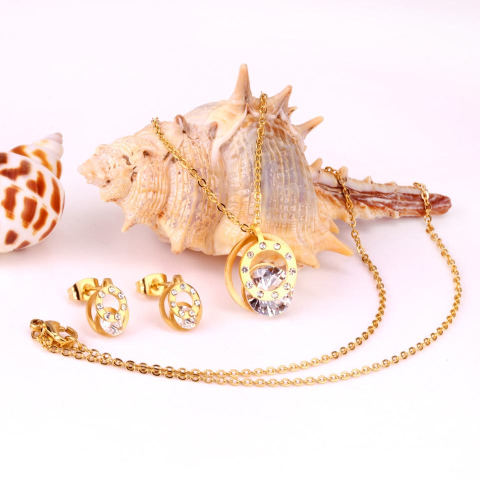 Zircon Jewelry Set Stainless Steel Jewelry Type Women Earrings and Pendant Statement Gold Jewelry Sets