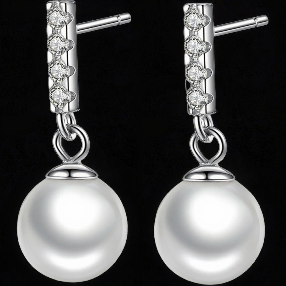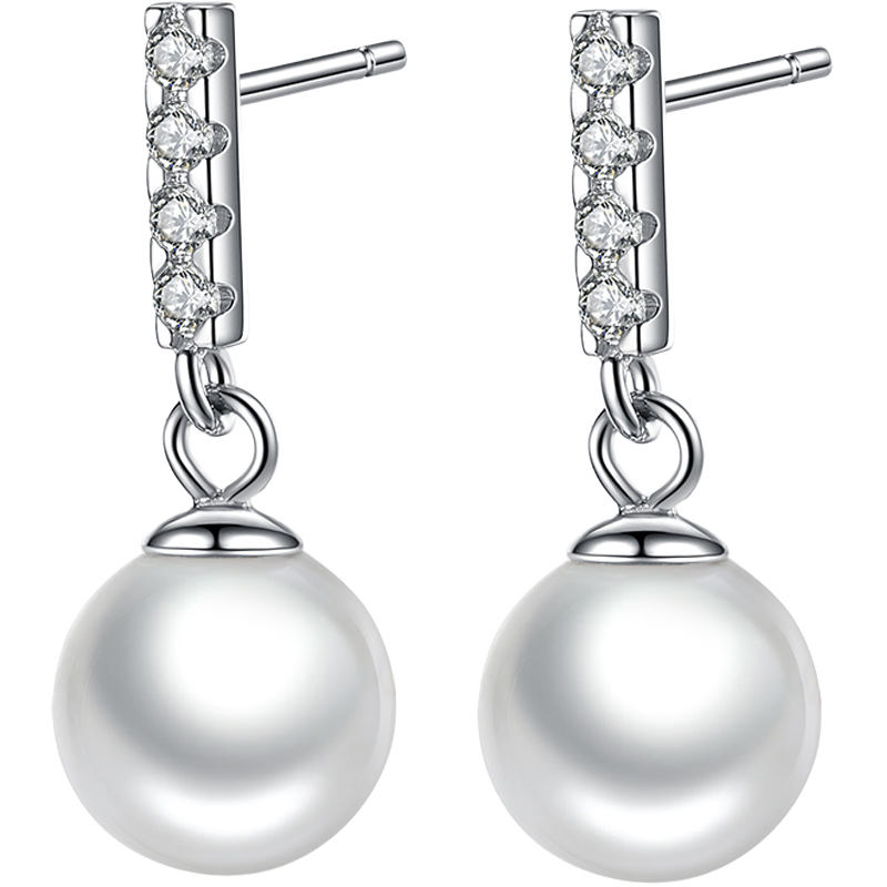 Zircon Sidestone Gold Plated 925 Sterling Silver Stud 9-10mm Natural Freshwater Pearl Earrings Women Anniversary Party
