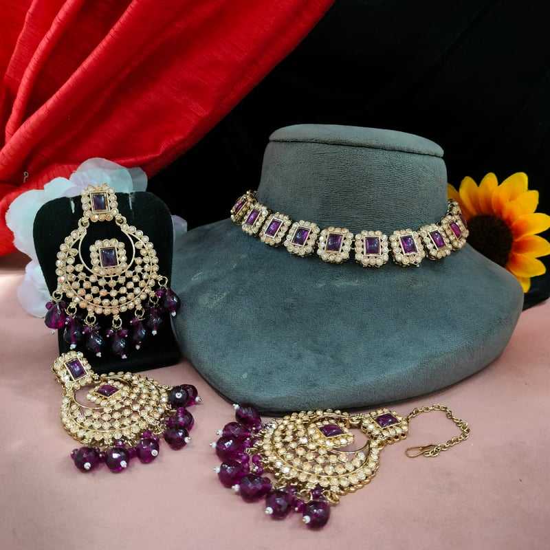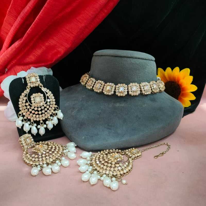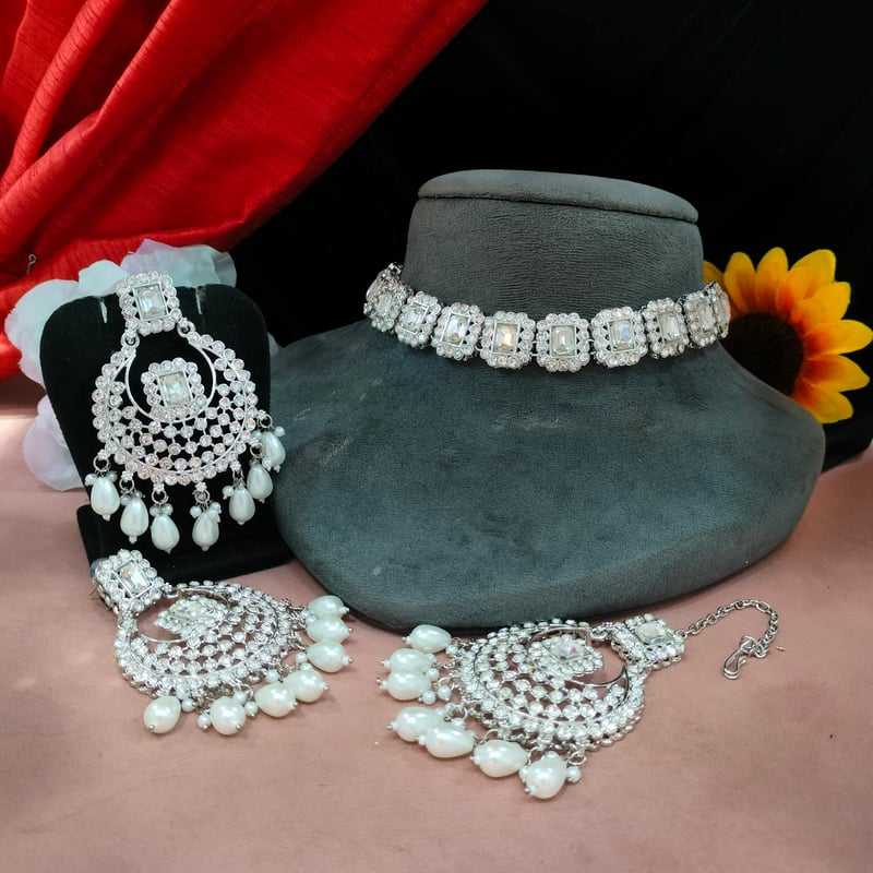 Zircon Sleek Necklace Set With Maang Tikka Elegant Piece Crafted With Precision Prefect For Both Formal & Semi Formal Occasions