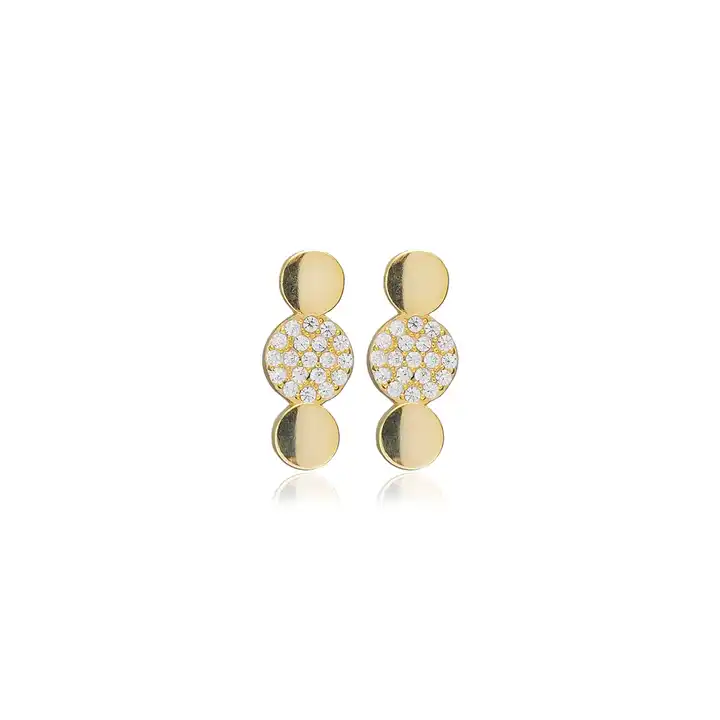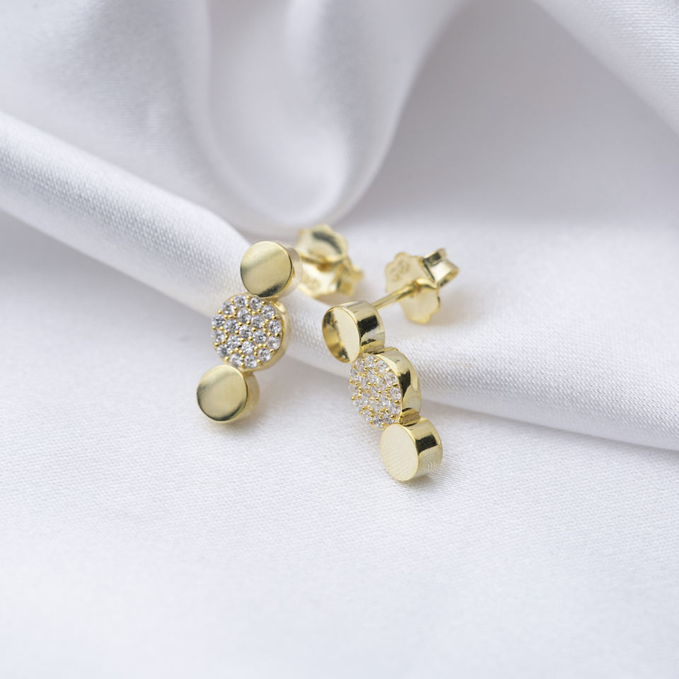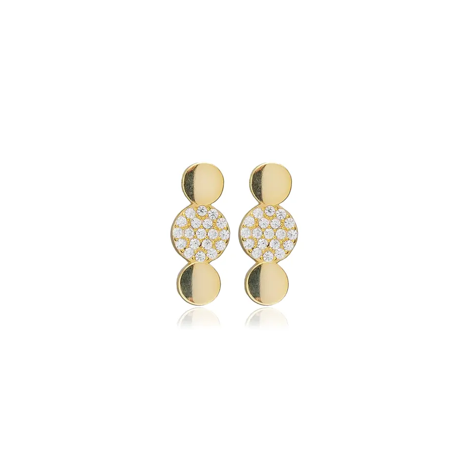 Zircon Triple Round Shape Gold Plated Fine Jewelry Handmade Wholesale 925 Sterling Silver Stud Earrings Women's Trendy