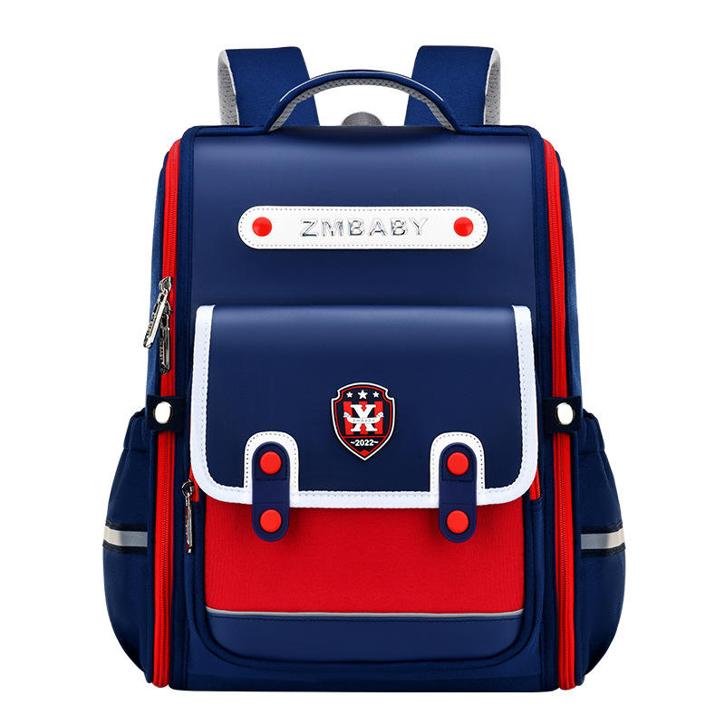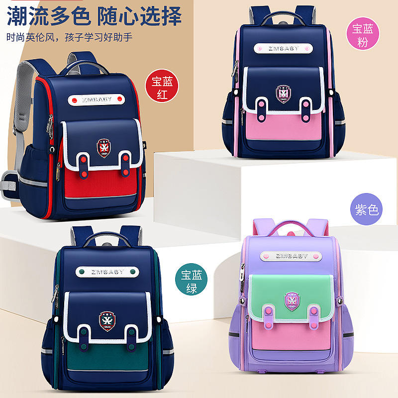 Zmbaby Student Backpack 15 Inches Color Blocking Unisex School Bag For Grades 1-3 British Style