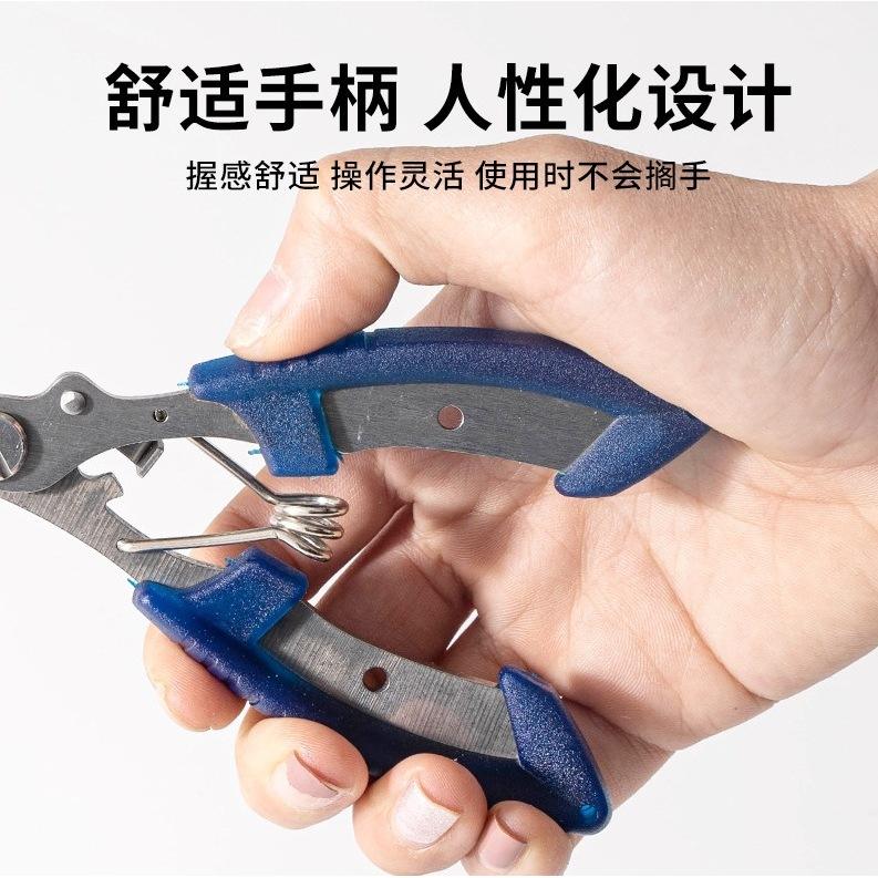 Ztc014 Curved Nose Fishing Pliers Stainless Steel Blue Handles Hook Remover Line Cutter Multi Functional Tool