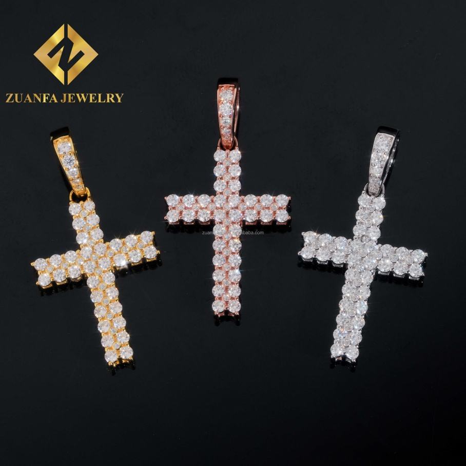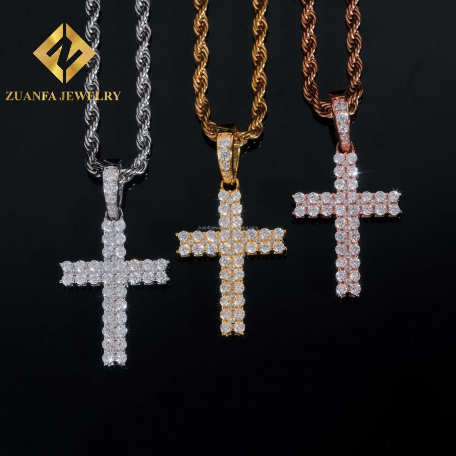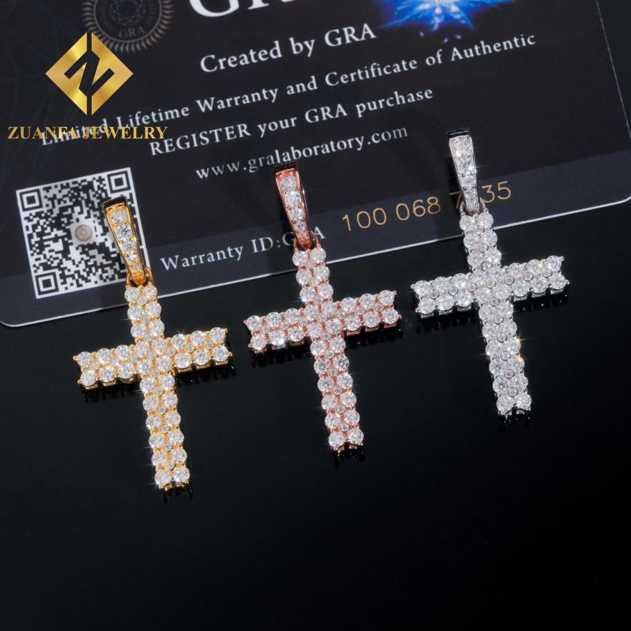 Zuanfa Jewelry New Design Iced Out Charms Pendant 925 Sterling Silver Hip Hop Fully VVS Moissanite Cross Pendant