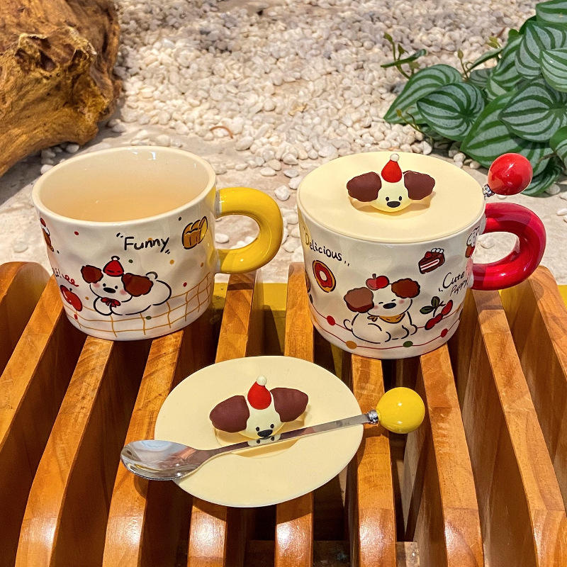 Zuo Mu Ceramic Mug With Lid 350ml Heat Resistant Cute Puppy Design Perfect Gift For Women Office Coffee Cup