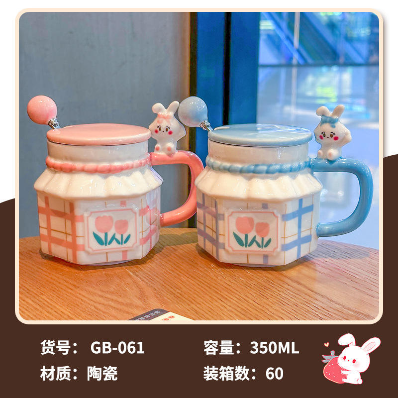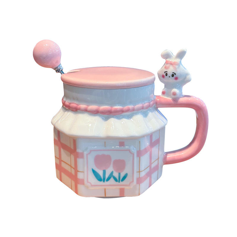 Zuo Mu Ceramic Mug With Lid And Handle Tulip Bunny Design For Women Students Office Use Reusable Gift Cup