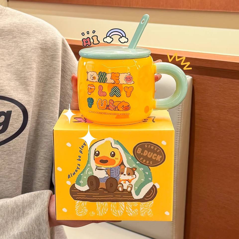 Zuo Mu Ceramic Mug With Lid And Spoon Cute Duck Design For Coffee Tea Water Office Home Use Gift Present Hand Painted Reusable