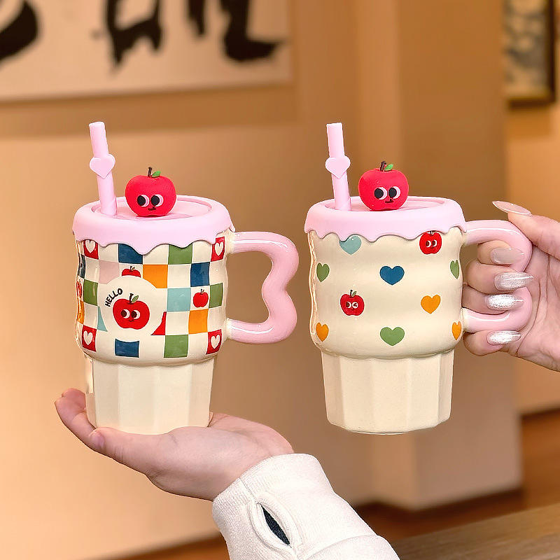 Zuo Mu Ceramic Mug With Lid And Handle Cute Apple Design Reusable Cup For Women Home Office Gift Spring 2025