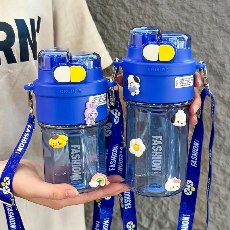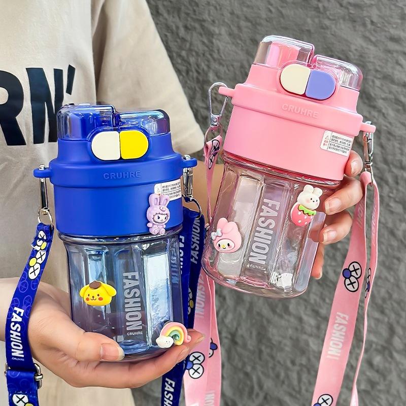 Zuo Mu Childrens Water Bottle 500Ml Bpa Free Dual Drink Cup For School Kids Fashion Design With Strap