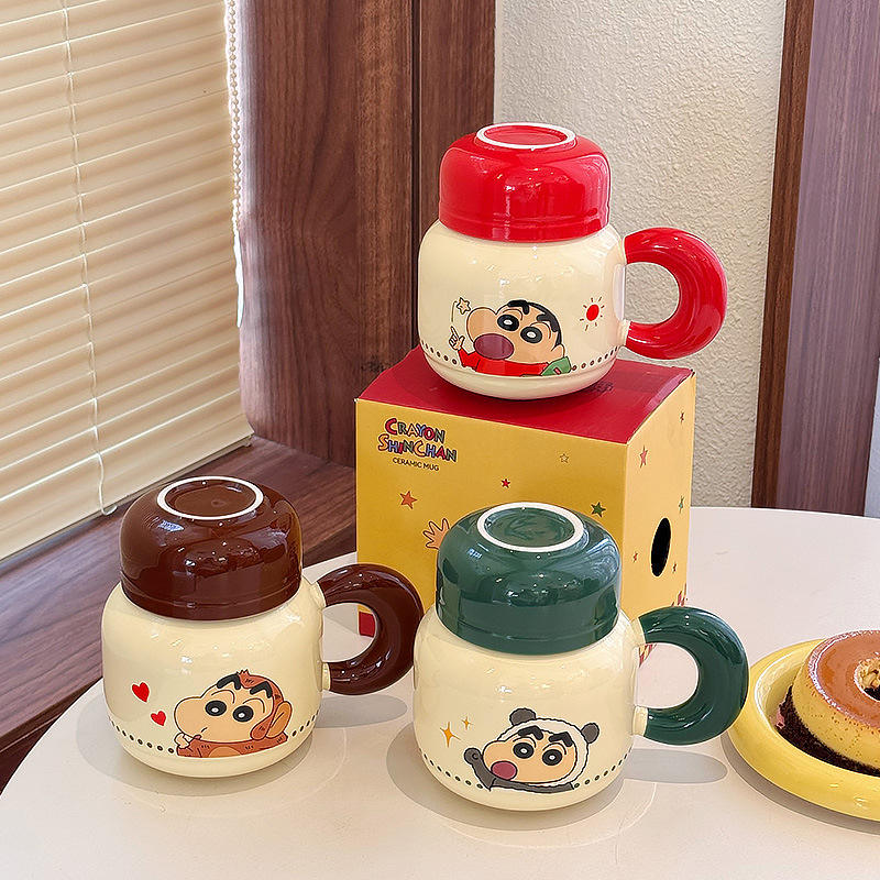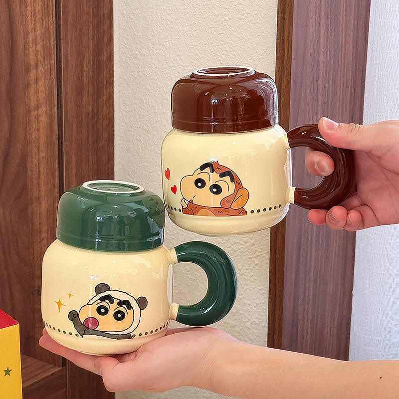 Zuo Mu Crayon Shin-chan Ceramic Mug With Lid Leak Proof Cute Couple Drinking Cup For Home Gift Spring 2025