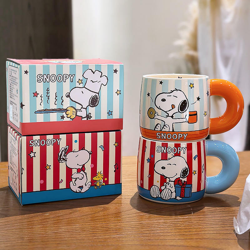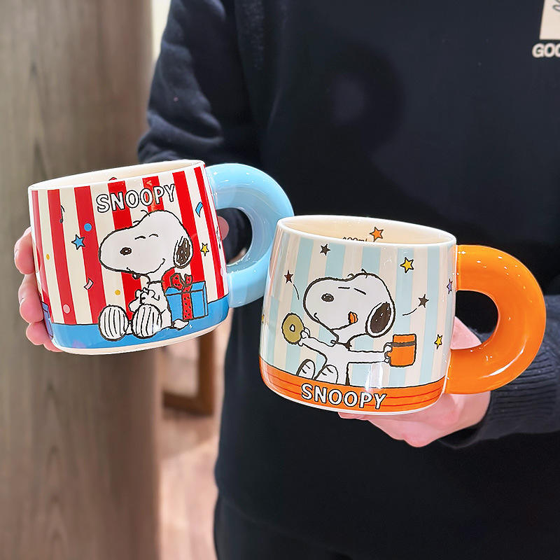 Zuo Mu Snoopy Ceramic Mug Large Capacity Striped Design Hand-painted With Handle Gift For Couple