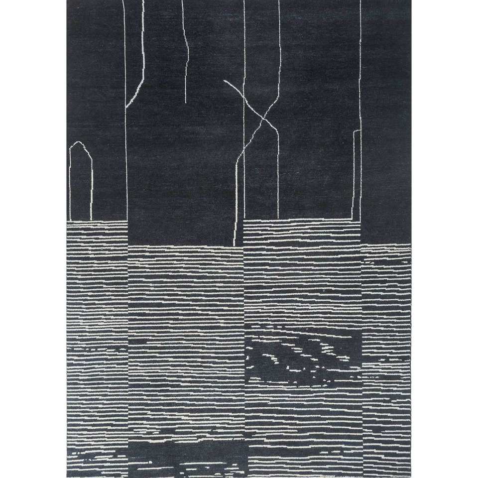 Zuri Hand Knotted Wool Rugs Abstract Boho Style for Teen Living Room Bedroom 9x12 Rectangle Hallway Pattern Grey Black-LCA-7041