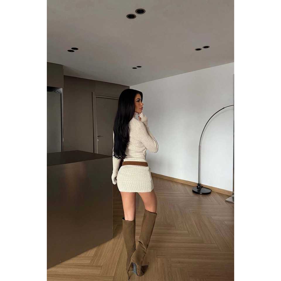 Zurich Knit Dress by Stone Maxi Casual Streetwear with Natural Waist Winter Woolen Print Straight Silhouette and Floor-Length