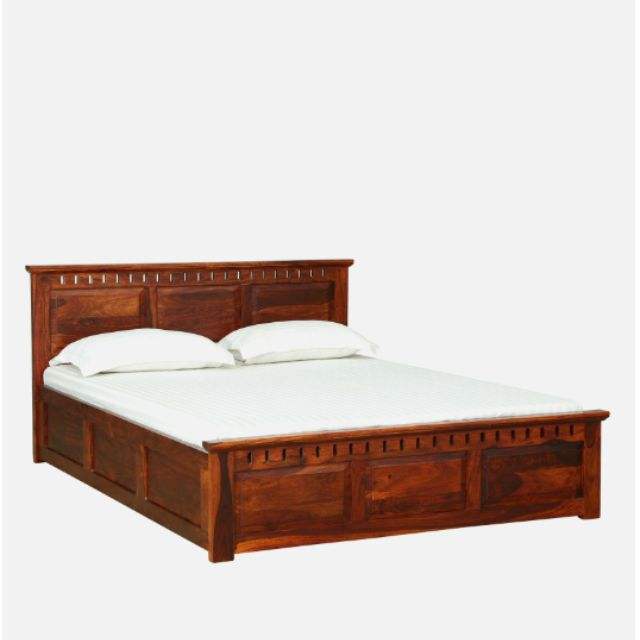 Zurndorf Contemporary Design Queen Size Bed with Sheesham Wood Box Storage Scratch Resistant Honey Oak Finish