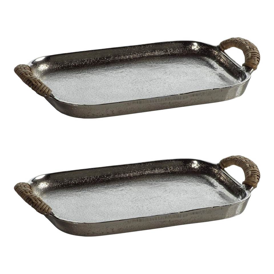 able Top Aluminum Food Serving Tray Best Quality Rectangle Shape Silver Plated Food Serving Tray With Rope Handle