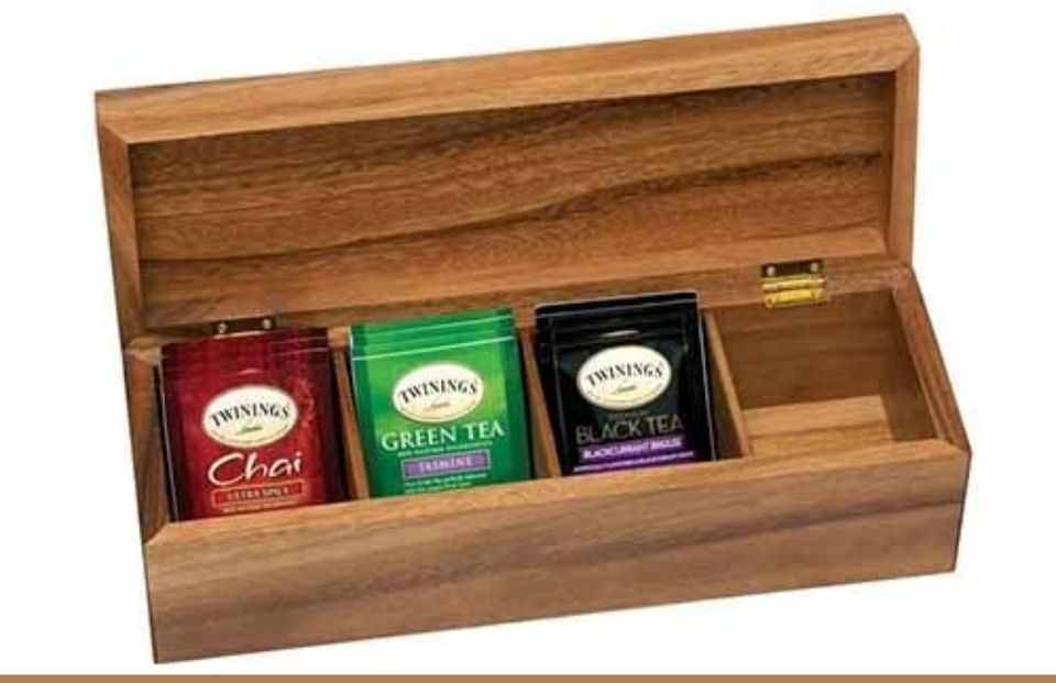 Acacia Wood Tea Packing Storage Box with Glass Lid Tea Bag Holder Box Organizer 5 Compartment Wood Bamboo Tea Bag Caddy Box