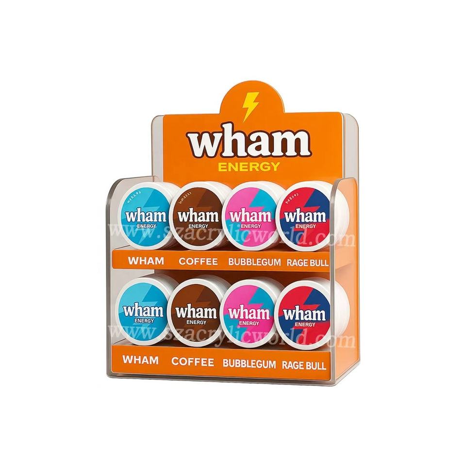 acrylic nicotine pouch merchandising eye-catching Snus displays