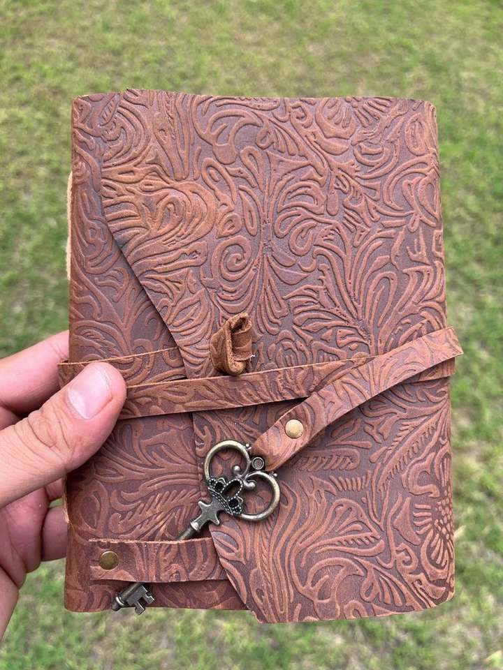 agate stone custom embossed leather journal with flower embossing pattern along with key made with old look papers