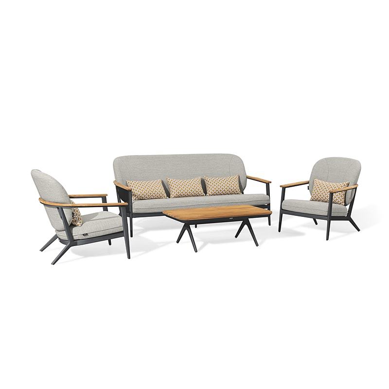 american modern Garden Sofa Set with Slatted metal Frame and Beige Cushions with oval table Stylish Yet Functional