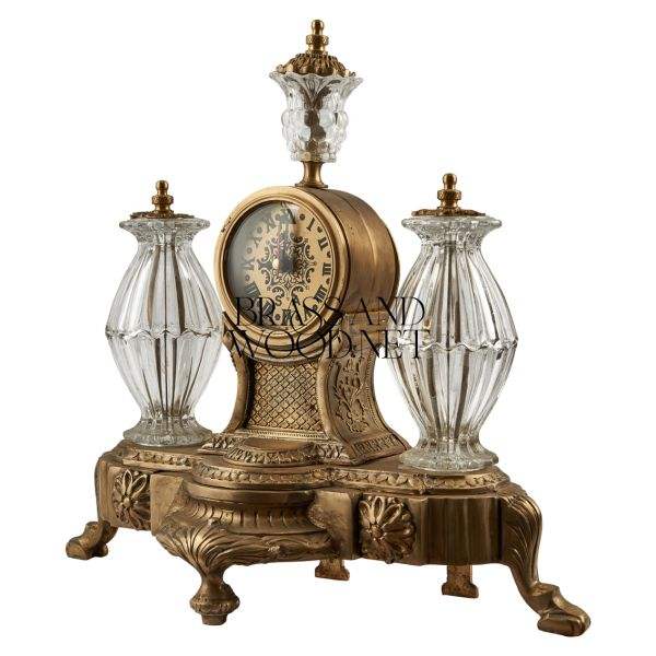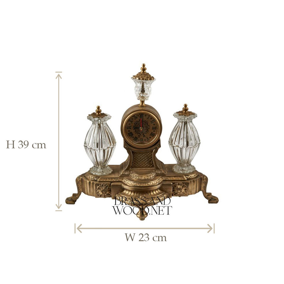 antique brass and crystal clock set with ornate candelabras handcrafted vintage luxury decorative centerpiece
