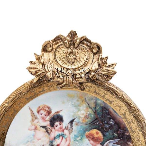 antique brass wall frame with cherub painting aged golden finish vintage decorative artwork classic luxury home decor