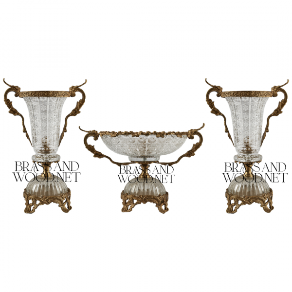antique crystal and brass centerpiece set with ornate handled vases handcrafted luxury vintage decoration elegant accessory