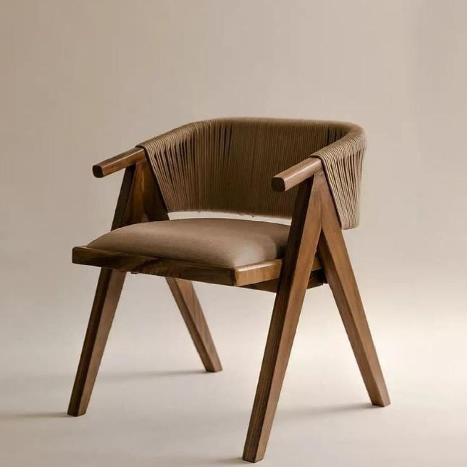 arm dining teak wood with rope and fabric seat